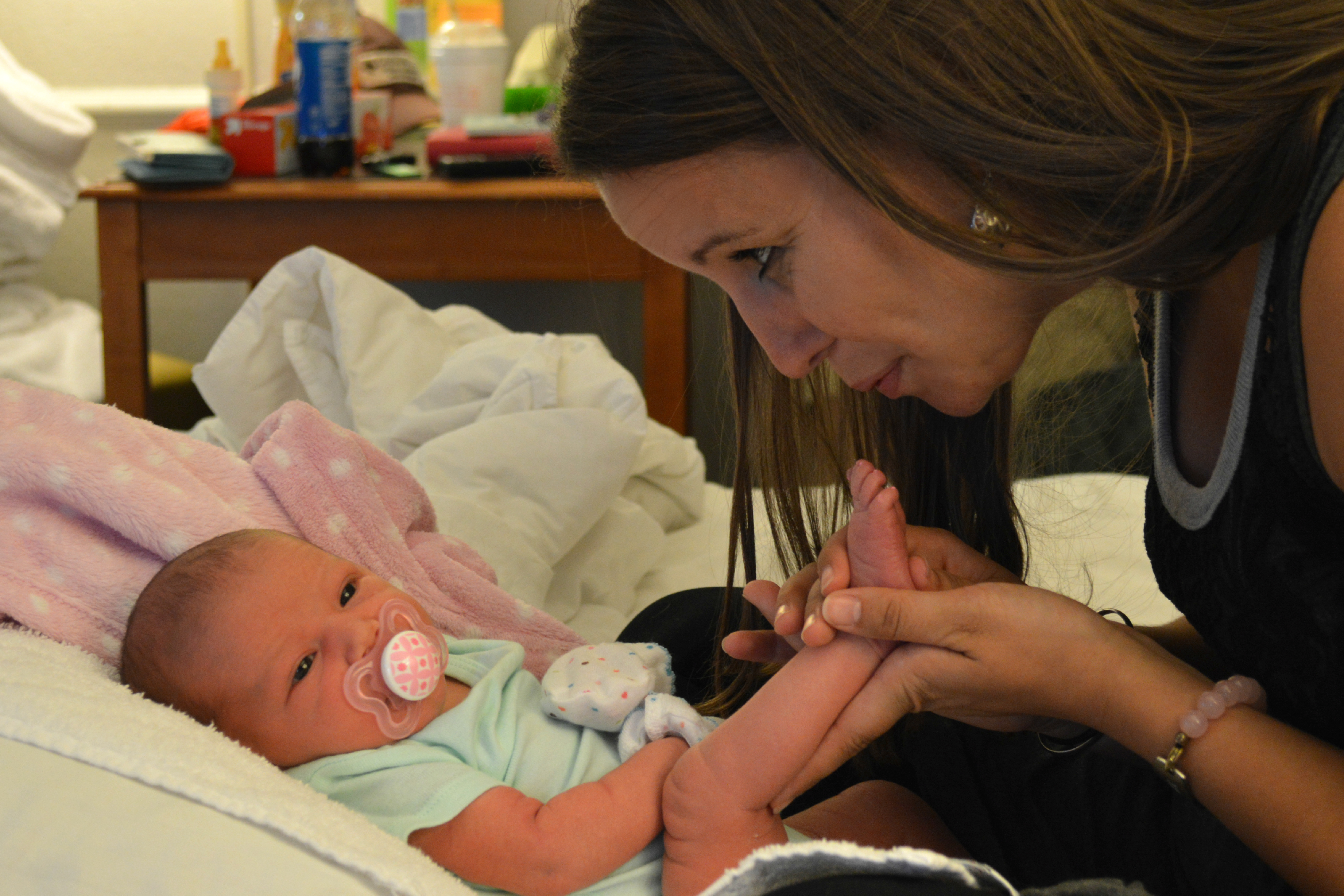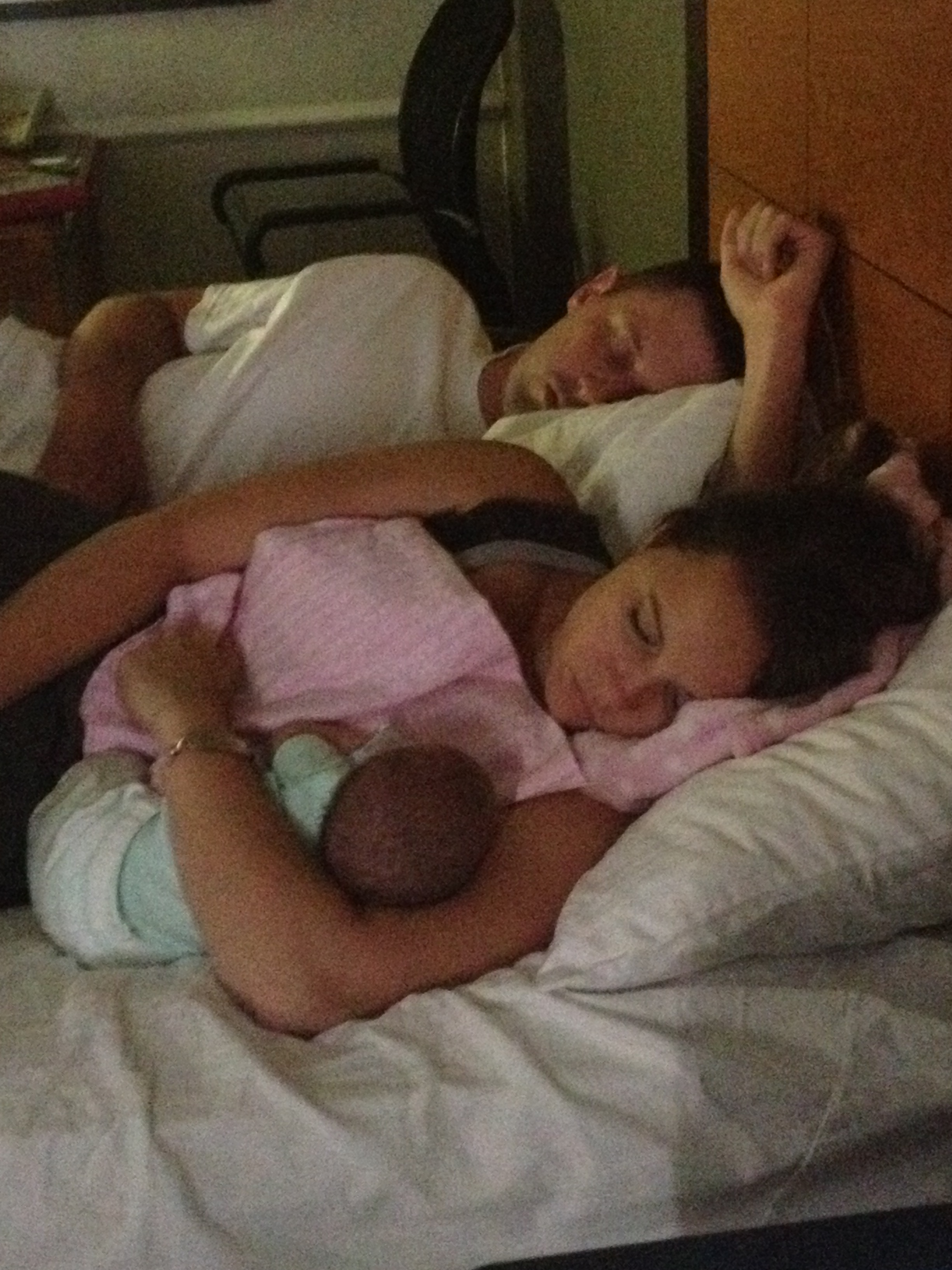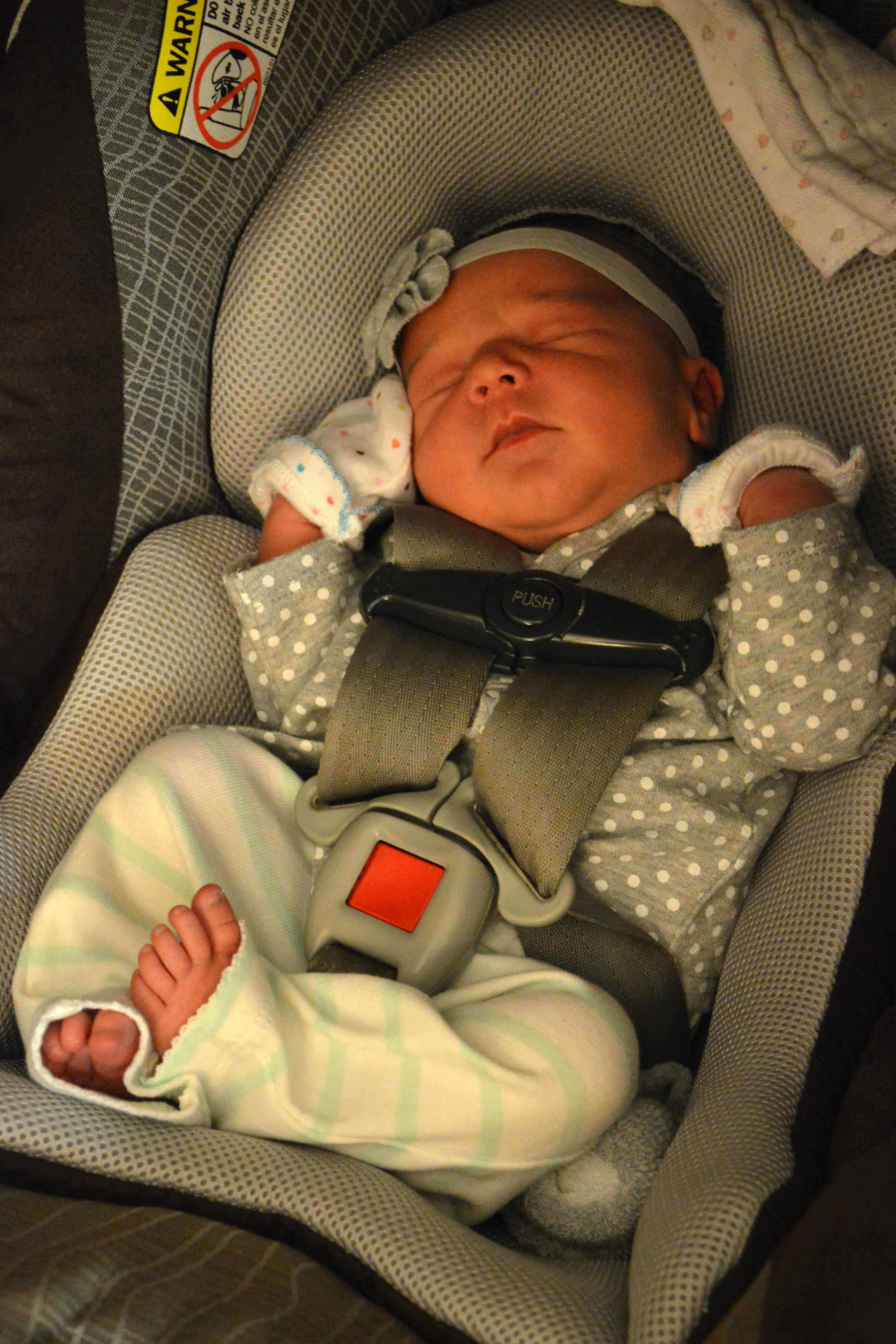 Ella Joy got an upgrade from a suitcase bassinet to a dresser drawer bed.