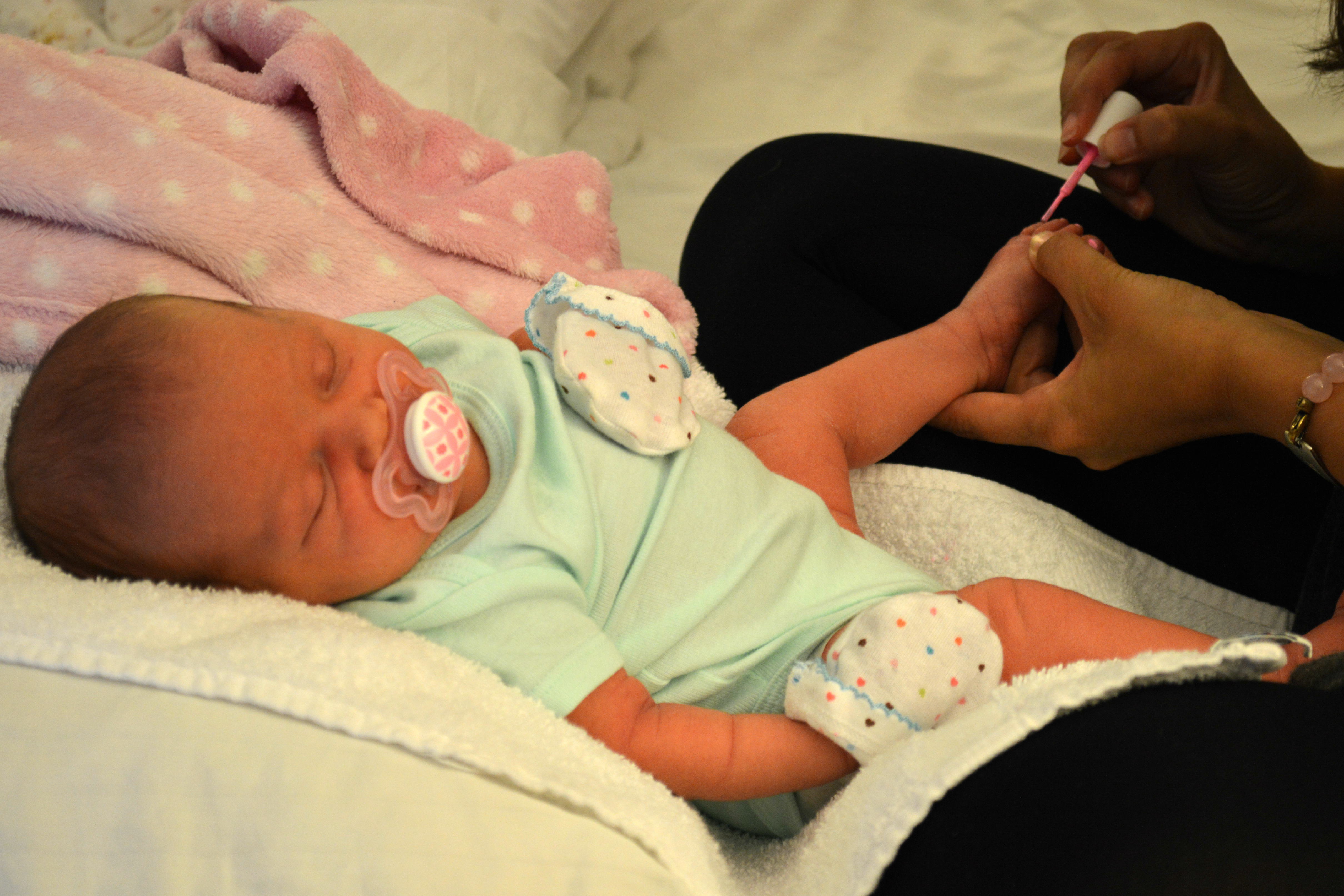 Later that afternoon Sarah and I went shopping at Buy-Buy-Baby. We bought Ellie a sun hat, sunscreen and piggy paint. I had mourned the fact that I would never be able to paint Allie’s little piggies so as soon as I could I wanted to have this experience with Ella Joy.